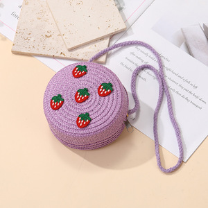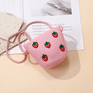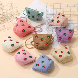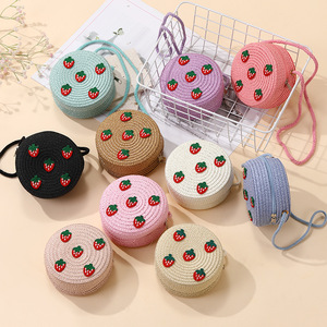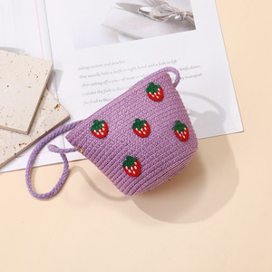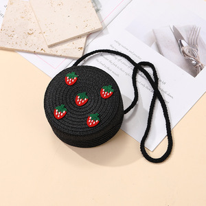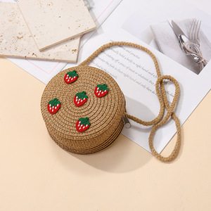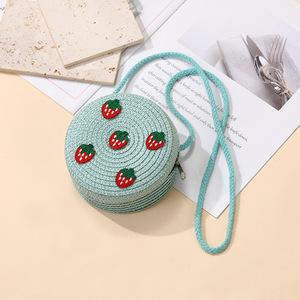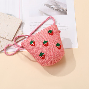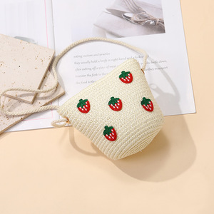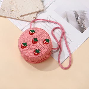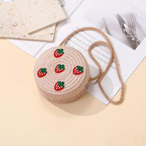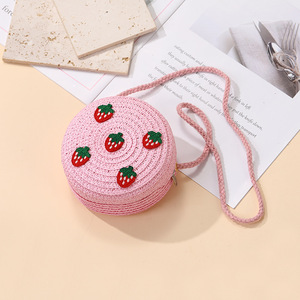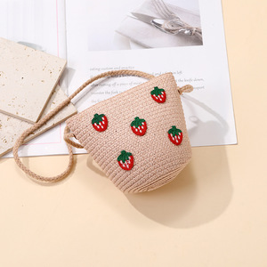 女の子用サマーバッグ、スカート付き、海辺の編み込みストローバッグ、かわいくて多用途なイチゴの子供用クロスボディホリデーストローバッグ
