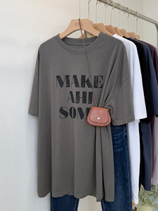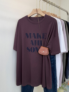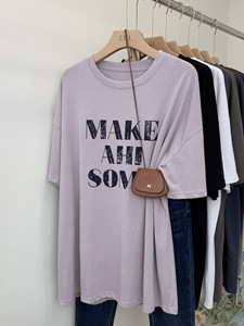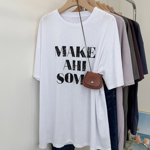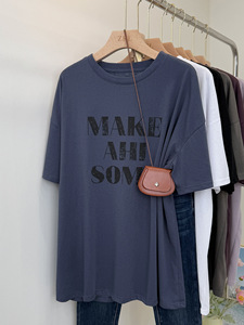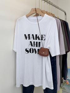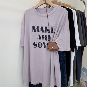 シャークパンツとミドル丈Tシャツを合わせてお尻をカバーする大きいバージョン半袖2025夏スノーフレークコットン通気性のある女性用ボトリングシャツ