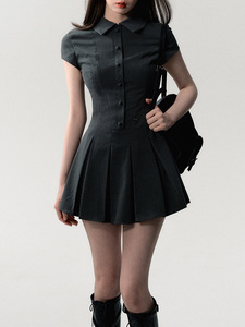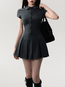 OAKMO/「授業終了までに待ってます」ワンピース Aラインスカート 半袖シャツワンピース 通勤カレッジスーツ素材 ティーブレイクワンピース