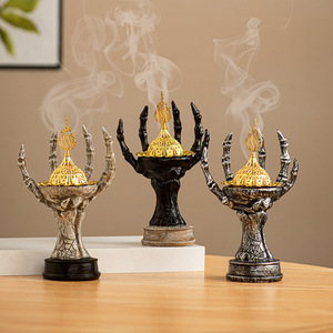 クリエイティブ樹脂ゴースト爪香炉蓋付き工芸品ゴーストフェスティバル装飾屋内屋外ハロウィン装飾品香炉シート