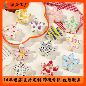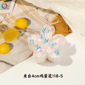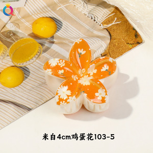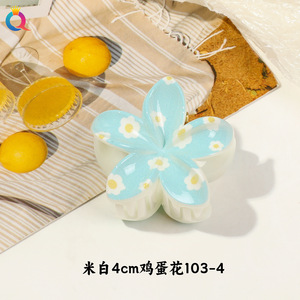 Qiyue クロスボーダー小型 UV プリント小さな新鮮なプルメリアクリップかわいいポニーテールフラワーヘアピンヘアアクセサリー女性のための卸売