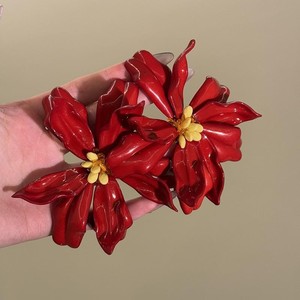 花は心地よい〜女性用の不規則な赤い花のイヤリング、フレンチライトラグジュアリーリゾートスタイル、誇張された甘いイヤリング