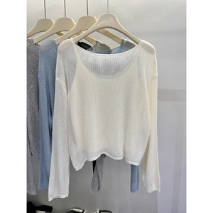優しいスタイルのキャミソール中空薄手長袖セータートップ女性のための 2025 春ルーズファッション 2 点セット