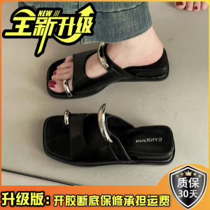 フレンチスタイルの新しいスタイルのウェッジヒールスリッパ、エレガントなサンダル、夏のカジュアルトレンド、多用途の女性用フラットシューズ