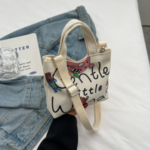 新款时尚帆布字母迷你单肩包女休闲洋气斜挎手机包小众外出手提包