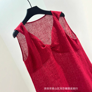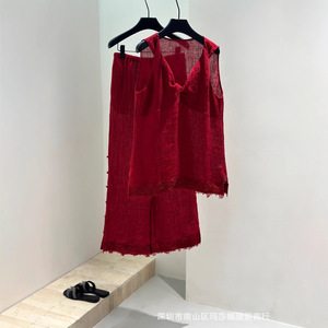 フランス南油春夏新作リネンテクスチャーレースノースリーブベスト+ウエストゴムワイドレッグカジュアルパンツスーツ