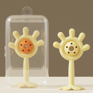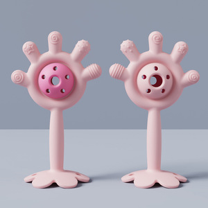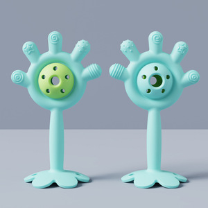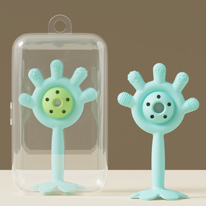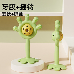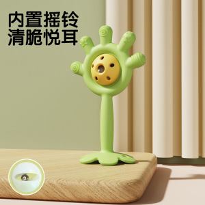 国境を越えたシリコンパームガラガラ歯固め、赤ちゃんの口をなだめるための歯固め、赤ちゃんの歯が生えるスティック、噛むおもちゃ