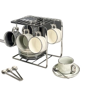 ホワイト(シルバー)エッジ[カップ6、ソーサー6、スプーン6+ブラックラック]