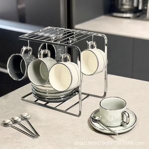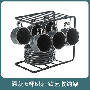 ダークグレー(シルバー)エッジ[カップ6、ソーサー6、スプーン6+ブラックラック]