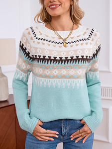 アマゾン/tiktok/shein/temu 人気のフェアアイルセーターエスニック幾何学模様プルオーバー女性用