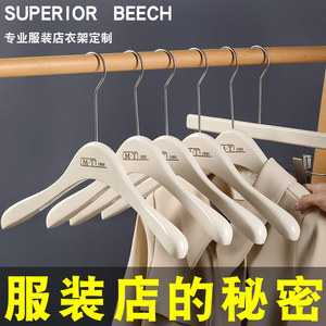 网红实木衣架奶白色防滑无痕衣撑服装店专用裤架女士成人衣挂批发