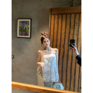 ビンゴが立体的なバラの刺繍の花柄スパンコールAラインチューブトップフィッシュテールスカートチュールスーツを販売