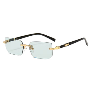 ヨーロッパとアメリカのトレンディなフレームレスエッジカットサングラススクエアメタルテクスチャーサングラス抗UVクロスボーダーインサングラス