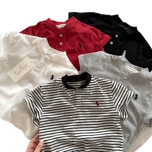 子供夏のTシャツ新しいスタイルの小さな子供と男の子のストライプのコットントップス男の子の赤ちゃんファッショナブルなブランド子供の多用途半袖