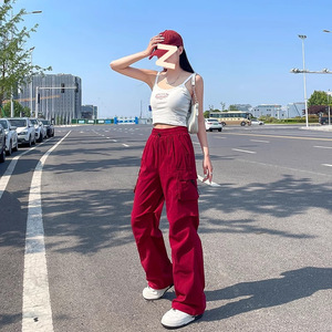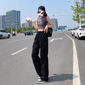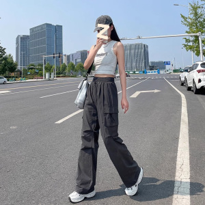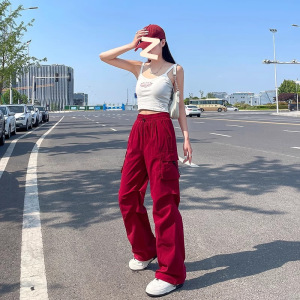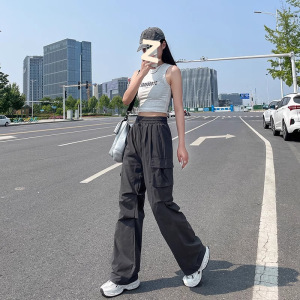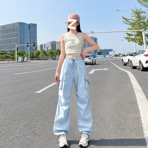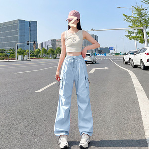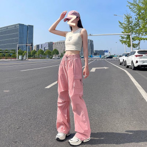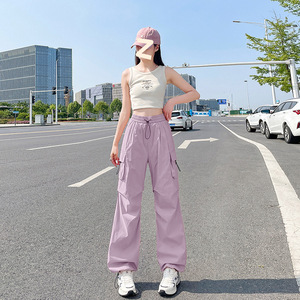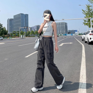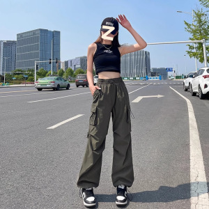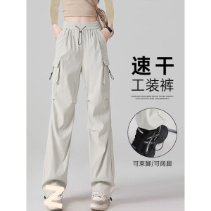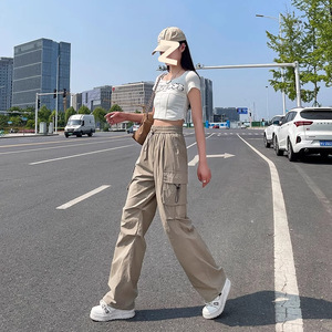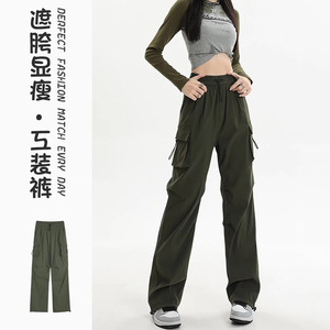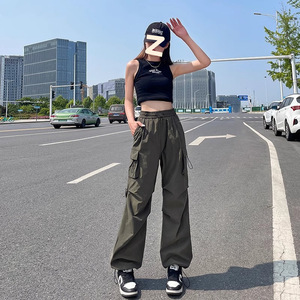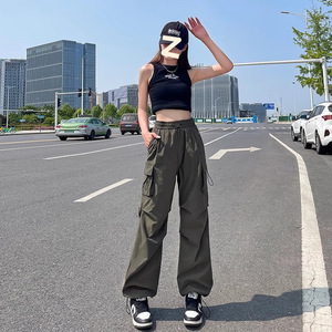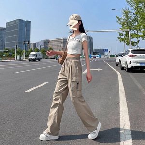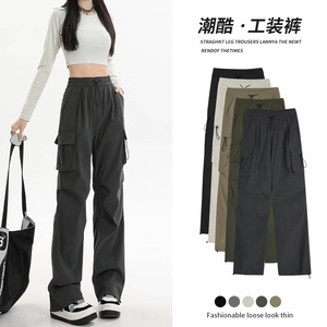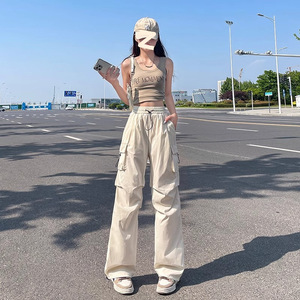 オフホワイトオーバーオール女性の 2025 新しい夏アメリカ空挺部隊アサルトパンツアウトドアワイドレッグカジュアルスポーツパンツ