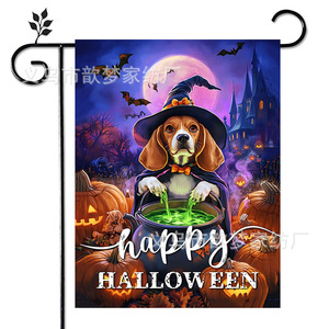 クロスボーダー新しいハロウィンカボチャ犬シリーズガーデンフラッグ屋外中庭装飾両面リネンフラッグ