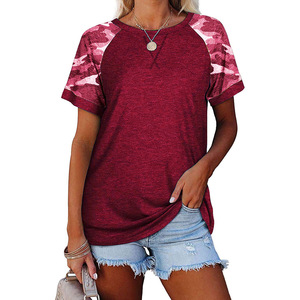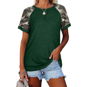 2023 夏の新ヨーロッパとアメリカのクロスボーダー婦人服アマゾンベストセラー迷彩プリントラウンドネック半袖 Tシャツトップス女性用