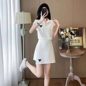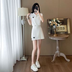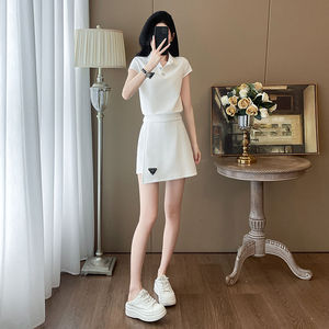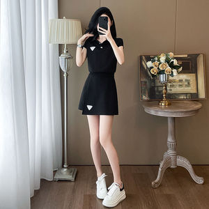 2025年新作夏韓国風ファッションカジュアルスーツ半袖ポロカラー年齢軽減痩身ショートスカートツーピーストレンドセット