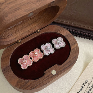 ローズゴールドの四つ葉の花のダイヤモンドがちりばめられたイヤリング、絶妙な社交界の女性の小さな香りのスタイル、多用途のインターネットセレブのイヤリング、環境に優しいカラージルコンイヤリング