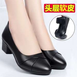 春秋中年女性靴、マザーズシューズ、ソフトソールミッドヒールシューズ、中高年革靴、女性作業靴、快適で滑りにくい