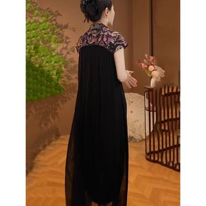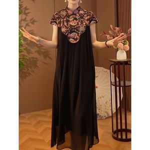 ベルトをプレゼント!ライトラグジュアリーレディプリントステッチスタンドカラードレス夏新作高級半袖Aラインスカート8225