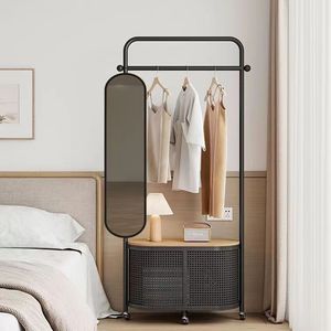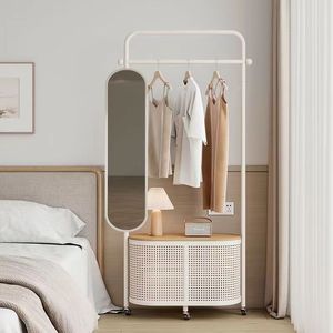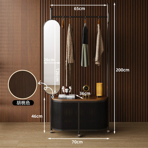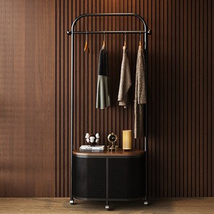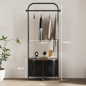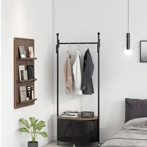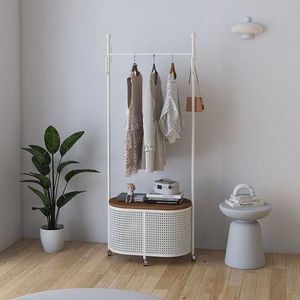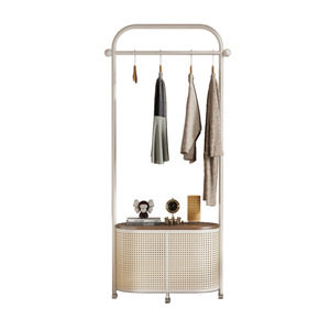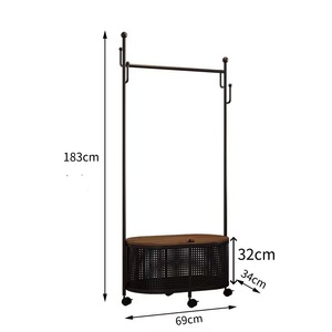 フロアスタンド寝室用コートラック、アンティークスタイル、軽い高級感、取り外し可能な模造籐の汚れた衣類バスケット、家庭用レトロ収納ハンガー