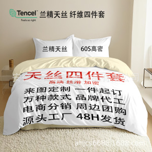 レンチングテンセル寝具4点セット、カスタマイズされたキルトカバー、枕カバー、アクティブプリントベッドシーツ、ボックスシーツメーカー