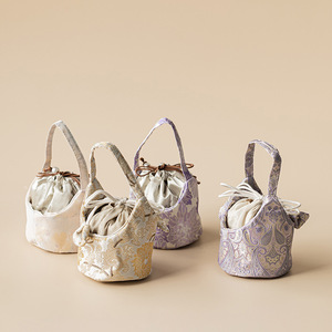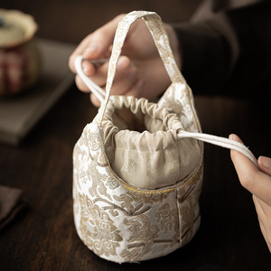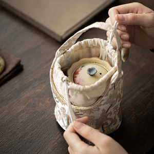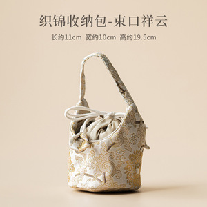 国风织锦束口收纳包小号茶杯茶壶袋抽绳收纳袋便携防磕防水茶事包