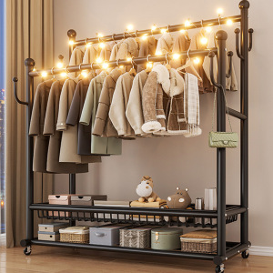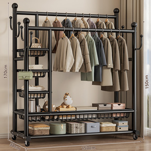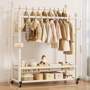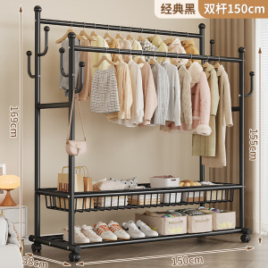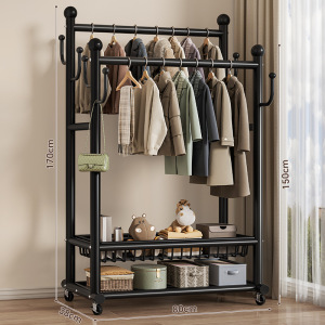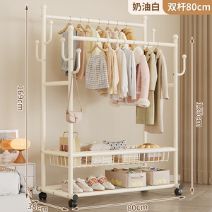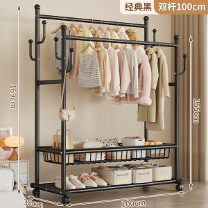 可移动晾衣架家用卧室落地式双杆衣帽架简易加粗收纳置物架批发
