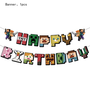 Minecraft ゲーム誕生日フラグバナーセットピクセルバトルゲーム誕生日パーティーパーティー装飾アレンジメント
