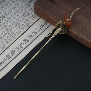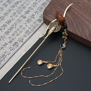 レトロな中国風のひょうたん銅貨ロングタッセルヘアピン新中国風漢服後頭部ハイエンドヘアピンヘアアクセサリー