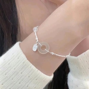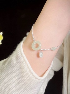 新款和田玉碎银几两手链女轻奢小众设计精致平安扣手环情人节礼物