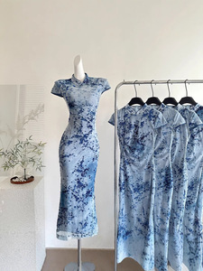 「Xinxing」Lingqianzihe Plum Blossom 新中国風レトロ改良チャイナドレス女性の夏のチャイナドレス襟ウエストドレス