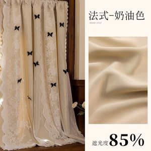 フレンチクリームカーテン寝室インスタイル子供部屋二層プリンセススタイル遮光リビングルームファンタジーレースドアカーテン