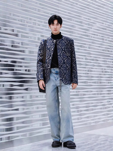天花板品质 25SS潮牌新款V家蟒蛇纹提花单排扣牛仔外套明星同款潮