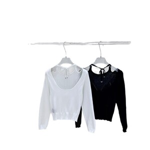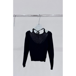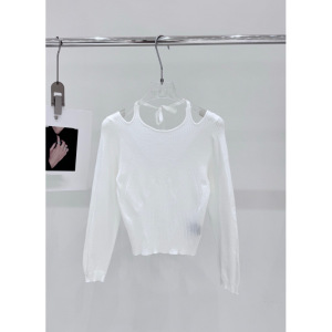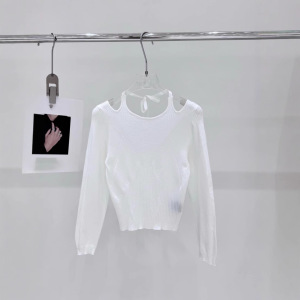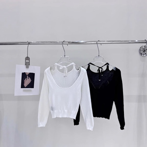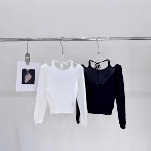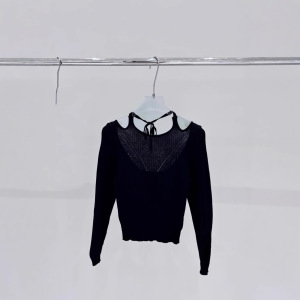 2025年新作サマースタイルフレグランスロゴホルターネックロープバックニット長袖プルオーバーゆったり万能レディーストップス