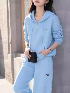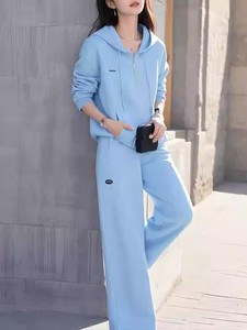 女性用カジュアルスポーツスーツ2025春着用、ストリートスタイルの若返りと高級感のあるブルースウェットシャツの2点セットの完全なセット
