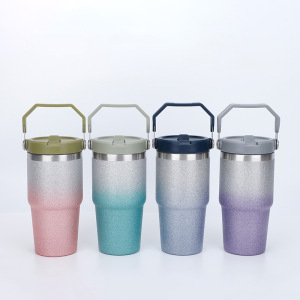新款304不锈钢手提汽车杯冰花漆双层真空保温杯随形便携运动水壶