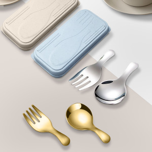 ステンレス鋼のポータブルスプーンとフォークセット子供用ライススプーンデザートスプーンフルーツフォークショートハンドルフォークスプーンミニ食器