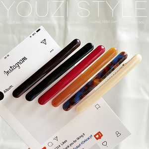 レトロなカラーマッチングのシンプルなアセテートカモノハシクリップ、女性用サイド前髪クリップ、気質ヘアクリップ、ヘアクリップ、ワンラインヘアクリップ