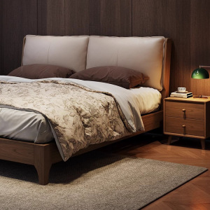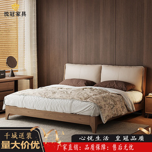 アッシュ無垢材ベッド ウォールナットカラー ダブルベッド 小型北欧モダン シンプル 1.8M ソフトパック 大型ベッド 収納ベッド