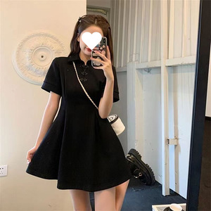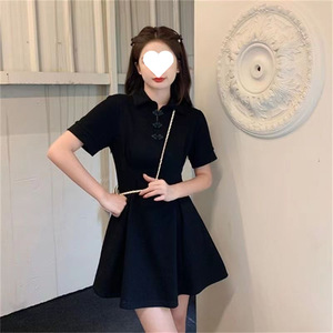 新しい中国風のボタン改良されたチャイナドレス女性の夏プラスサイズファットmmウエスト痩身半袖ポロカラーリトルブラックドレス