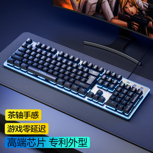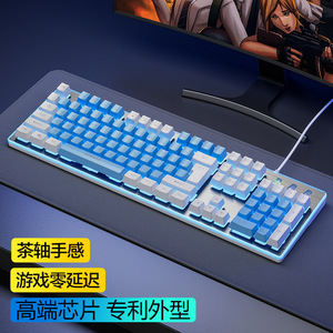 ホワイトブルーアイスブルーライト[茶軸フィール]ハイエンドチップ+サイレントボタン+メタルパネル+クールな照明効果+人間工学に基づいた高見え+デスクトップおよびラップトップにユニバーサル