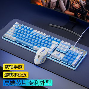 青と白のアイスブルーライト [ティーシャフトフィール] ハイエンドチップ + サイレントボタン + 金属パネル + クールな照明効果 + 人間工学に基づいた高見え + デスクトップおよびラップトップにユニバーサル