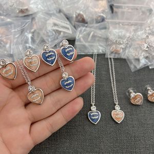 25p Xiaoxiang 新作春夏秋新作ブルーラブダブルcネックレスイヤリングレディース樹脂ダイヤモンドデニムブルーイヤリング