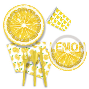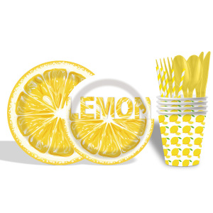 クロスボーダー小さな新鮮なレモンをテーマにした誕生日パーティー用品使い捨て紙皿紙コップペーパータオルテーブルクロスセット