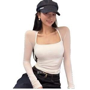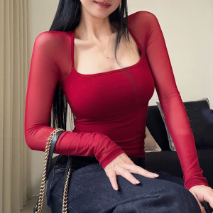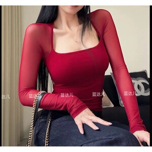 YIDENG フレンチスクエアネックブラックボトリングシャツ 2025 春の新スタイルレトロ長袖スリムインナー Y パッド付き