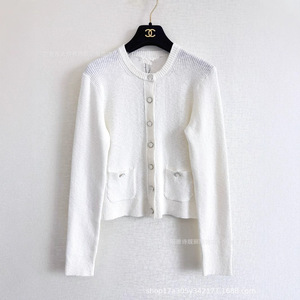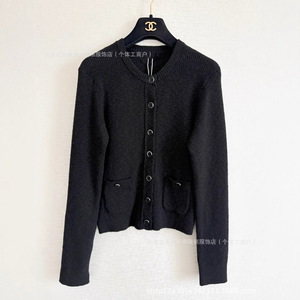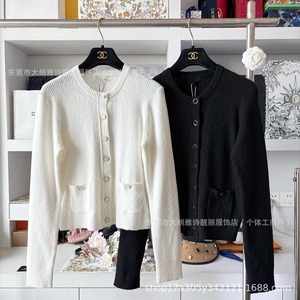 CH 2024 秋冬フレンチセレブスタイルライトラグジュアリーラウンドネックゴールドバックル気質スリムファッション多用途セータージャケット
