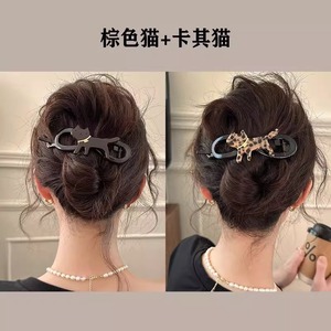 かわいい漫画の猫ツイストクリップ女性用大型ヘアクリップ2025新しいハイエンドの後頭部ヘアクリップ