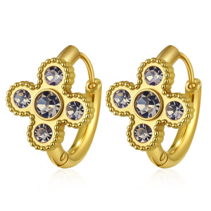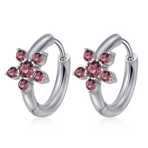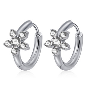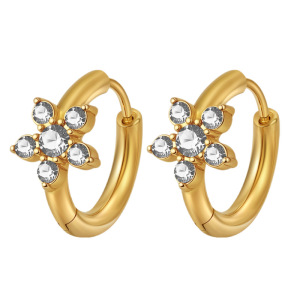 クロスボーダー直接供給ステンレス鋼 5 葉フラワー象嵌ジルコンイヤリング女性のトレンディなファッションメッキ 18 K イヤリング卸売